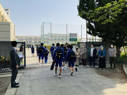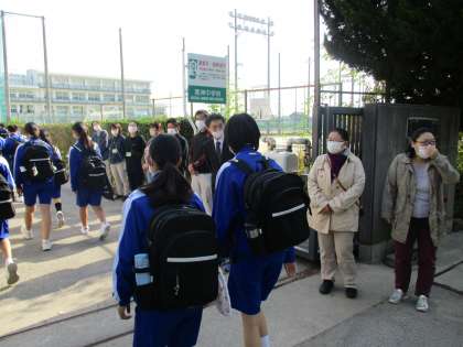 4月10日(月)〜14日(金)にPTA挨拶運動を行っています。子どもとのコミュニケーションが図れるようにと、生徒登校時にPTA委員の皆様が南門付近に立ち、挨拶運動に参加してくださっています。朝早くから、ご協力ありがとうございます。