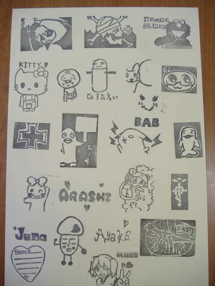 最近作り始めているハンコです。1・2年が作っています。しかも消しゴムから。