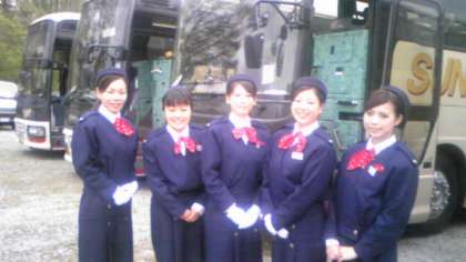 写真のバスガイドさんたちに、明日もお世話になります。
