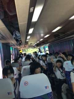 予定が遅れているため、今後の都内見学は少々変更するとの連絡です。今から、クラス別にバスで見学に行きます。