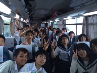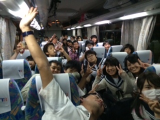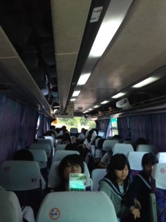 全クラスのバスが、海老名SAに到着しました。そろって、伊豆高原に移動開始です。予定より1時間遅れて、午後7時に各クラスのペンションに着く予定です。
