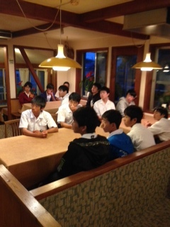 先ほど、各クラス伊豆高原のペンションに到着しました。オーナーさんの歓迎を受け、ゲストルームでペンションでの生活について説明を受けています。まもなく、待ちに待った夕食です。