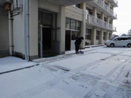 また雪が積もりました。早く出勤した先生方が、生徒の歩く動線を整備してくれました。