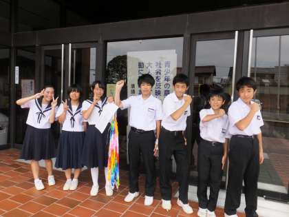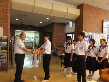 本日のST後、全校生徒のみなさんで制作した折り鶴を、生徒会役員で清洲市民センターへ届けにいきました。