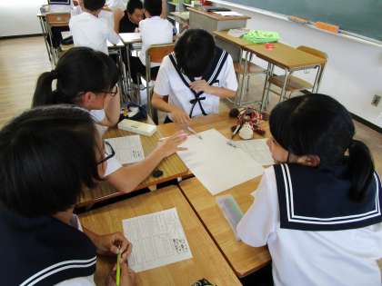 各クラス2〜4人ほどのグループになり、まとめるためにレイアウトを考えているところです。今後、もっと詳しく調べて情報を集めていき、11月に予定されているオープンスクールに掲示するためにがんばって作成していきます。