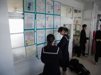 各学年の担当者や展示をする部活動の生徒を中心に多くの作品が掲示され、校舎内の清掃は2年生が中心となり取り組みました。