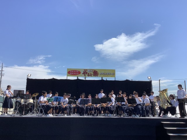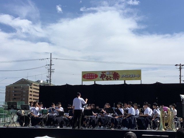 吹奏楽部が「新川やると祭」で演奏しました。