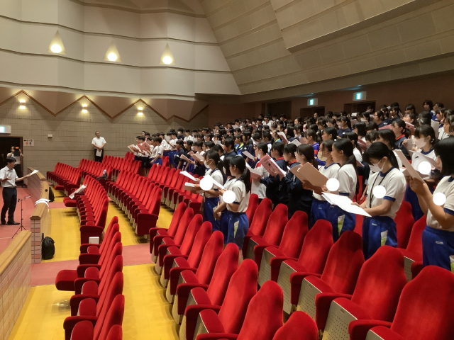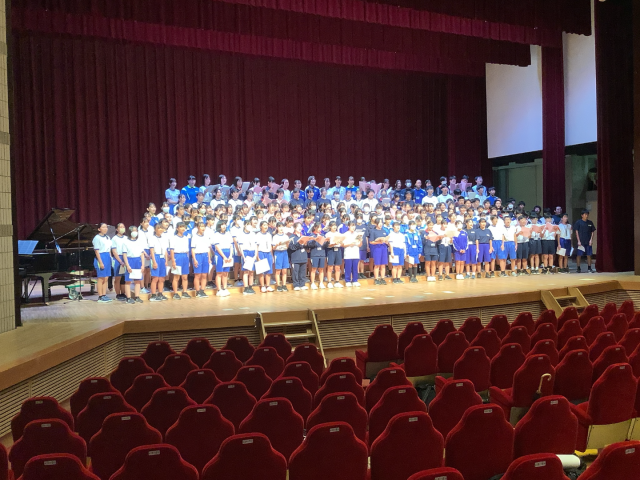 春日公民館で清須市合唱隊が合同練習を行いました。2学期となって初めての合同練習で、合唱の練習に加えてひな壇での並び順や、入場方法を確認しました。残りの合同練習も10/14(火)の1回となり、子どもたちの式典へのボルテージの高まりを感じます。行事もあり忙しいですが、市民の人々に感動を届けられるように頑張っていきましょう。