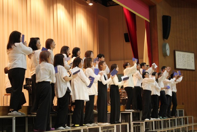 最後に全校生徒による校歌斉唱が行われ、文化発表会に向けて積み重ねてきた努力を互いにたたえ合う、感動的な時間となりました。