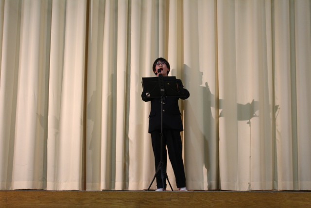合唱隊による合唱は、学年ごとの合唱とはまた違った、温かみと深みがありました。有志の生徒たちが心を込めて歌う姿に、静かに耳を傾けていました。