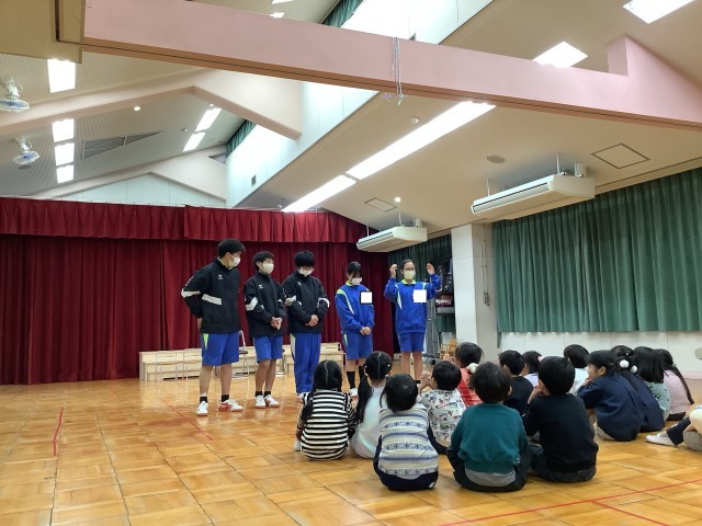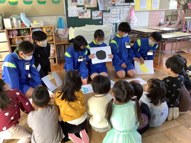 12月11日(木)の2・3時間目に、1年C組が幼児ふれあい体験のため西枇杷島保育園に行きました。家庭科の授業中に作成したオリジナルのネームバンドを付けて体験に臨みました。園児たちと同じ目線で話をしたり、一緒に遊んだりして過ごしました。生徒たちが考えたレクリエーションを行い、園児たちを楽しませていました。普段の学校生活とは異なった表情で、園児たちと関わる生徒たちの姿を見ることができました。生徒たちを快く受け入れてくださった西枇杷島保育園の皆様、ありがとうございました。