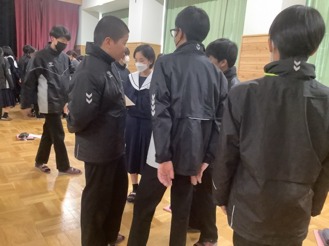 あいさつや言葉づかい、立ち居振る舞いなど、社会の中で大切にしたいマナーについて、ロールプレイングを取り入れながら考える時間を持ちました。体験的な活動を通して、生徒たちは「相手を思いやる気持ち」や「社会の一員としての心構え」について、改めて向き合う機会となりました。