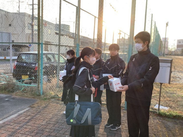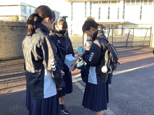 昨日から朝校門にて赤い羽根募金運動を行っています。