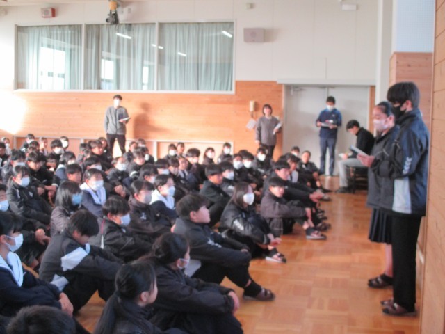 生徒たちは、これまでの歩みを振り返りながら、少し先の未来に思いを向ける時間となったことと思います。この学年集会が、それぞれの成長につながるきっかけとなることを願っています。