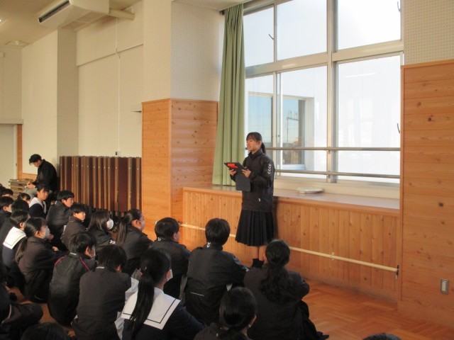 集会では、冬休みの過ごし方や、これから迎える3年生に向けての心構えについて、先生方からお話がありました。一日一日を大切にすることや、自分自身と向き合いながら次の学年へ進んでいくことの大切さが、伝えられました。