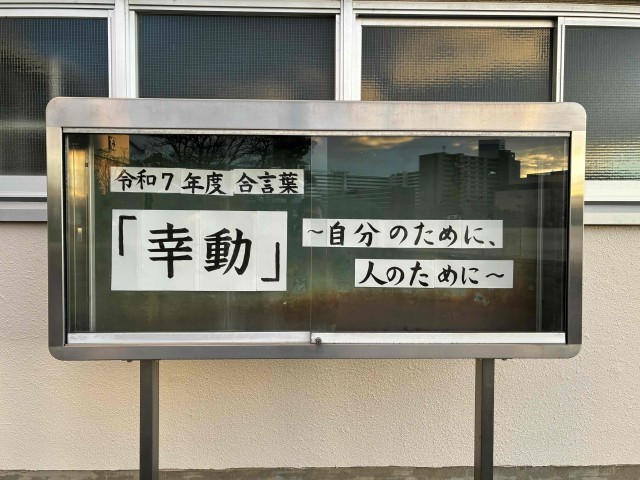 生徒の皆さん!自分の幸せを追い求め、まわりの人のことも幸せにできるよう、行動してください。今年も「幸動」を意識しましょう。