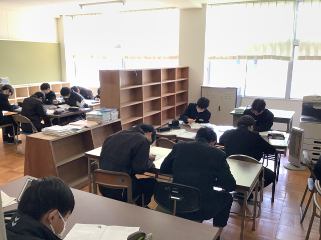 卒業式に向けて、昼休みの合唱練習が始まりました。パートごとに別々の教室に分かれ、練習を行いました。また、来週に迫った公立入試に向けて勉強したい生徒は、多目的室や進路指導室で勉強に励みました。卒業式まで残り11日。合唱も含め、自分たちで最高の卒業式を作り上げてほしいと思います。