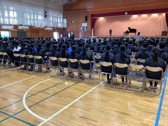 本日5時間目に、卒業式や3年生を送る会で披露する合唱に向けた練習を行いました。卒業式練習では、典礼に沿って起立・着席・礼等の動きの練習をしました。お世話になった先輩に気持ちよく式典を迎えられるように、キビキビとした動きを意識して練習に取り組むことができました。