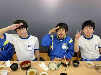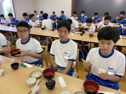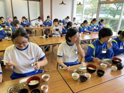 筏づくり体験を終えて、昼食の時間です。自然体験学習最後の食事となります。しっかり食べて帰路に着きましょう。