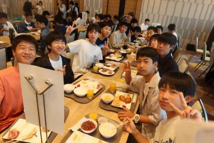 おはようございます。修学旅行2日目が始まりました。朝から生徒たちは元気にご飯をたくさん食べています。