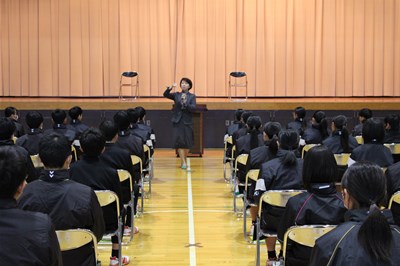 本日、5・6時間目に体育館で、マナー講座が行われました。挨拶、礼儀、人としての在り方などを学ぶことができました。1月には、職場体験学習が実施されます。その際に活かしていきましょう!!