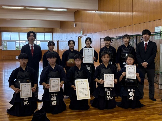 男子個人戦では、新川中生の活躍には目を見張るものがあり、ベスト4すべてが新川中生でした。決勝戦、準決初戦、3位決定戦どの戦いからも、普段の稽古を共にする相手だからこそ負けられないという思いが伝わってきました。