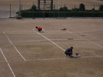 昨年から、土を入れ、整備を続けてきたテニスコートの完成が近づきました。