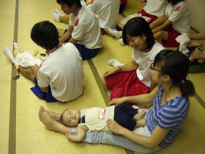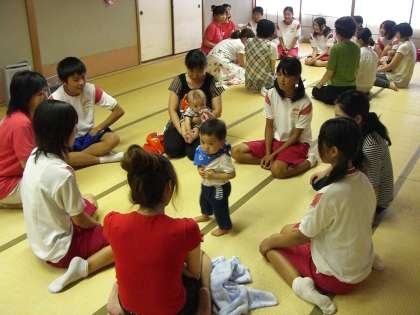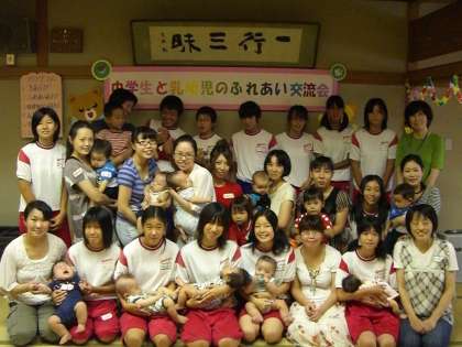 8月19日、新川体育館和室において中学生と乳幼児のふれあい交流会が行われました。市内の家庭教育支援チーム「チームMOMO」さんが企画され、新川中学校の生徒が参加しました。どの生徒も保護者の方や「チームMOMO」の方にいろいろ教えてもらいながら、とても優しく温かい気持ちで赤ちゃんに接していました。