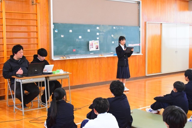 始めに、学年主任より、学年訓「七転八起」に込められた思いについて話がありました。生徒たちは、失敗を恐れずさまざまなことに挑戦し、あらゆる経験から学びを得ようとする姿勢の大切さを改めて感じ取っていました。