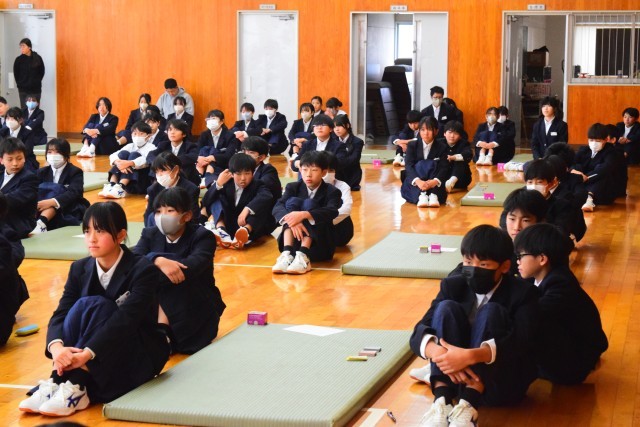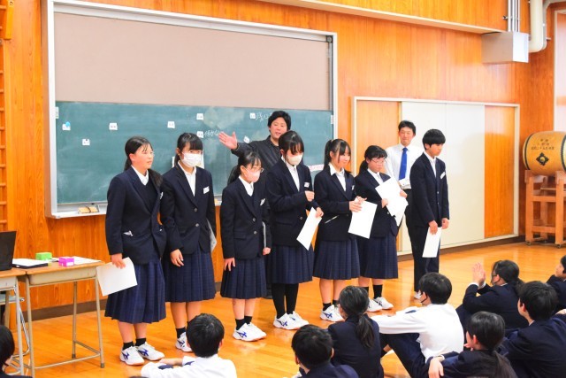 6限目に学年集会が行われました。春休みの過ごし方についてや、各先生からのお話があり、1年間を振り返り、新しい学年へ向けての心構えをもつことができました。