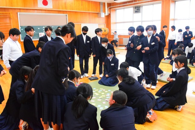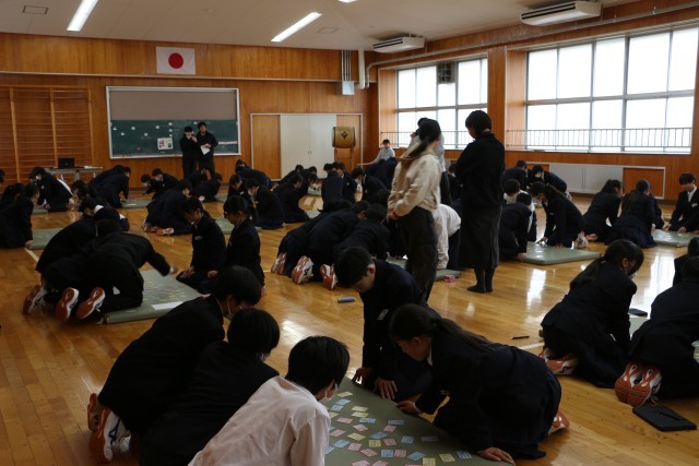 この日に向けて、国語の授業や休み時間を活用しながら練習を重ねてきた生徒たちは、これまでの努力の成果を発揮しようと、一つ一つの試合に真剣な表情で臨んでいました。生徒全員が参加した団体戦の後には、各クラスの代表生徒による試合が行われ、実力が拮抗した中での熱戦に、観戦していた生徒たちからも大きな歓声が上がりました。