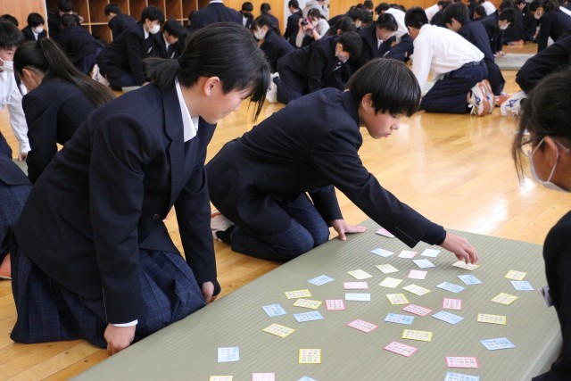 12月17日(水)の5・6時間目に、学年レクリエーションとして百人一首大会を行いました。