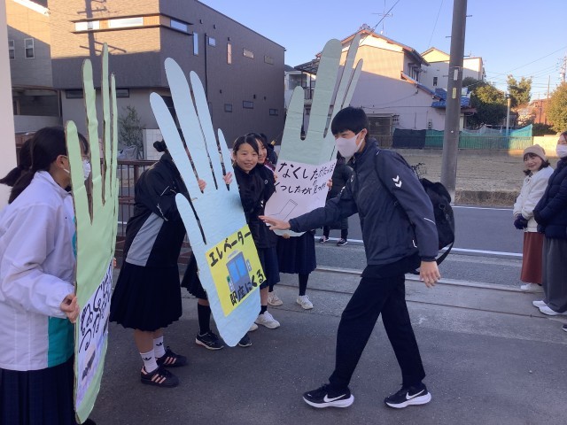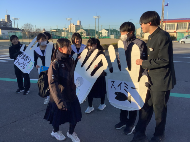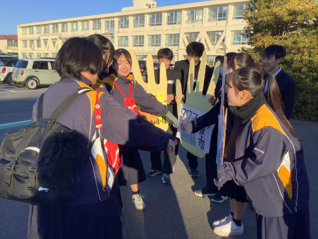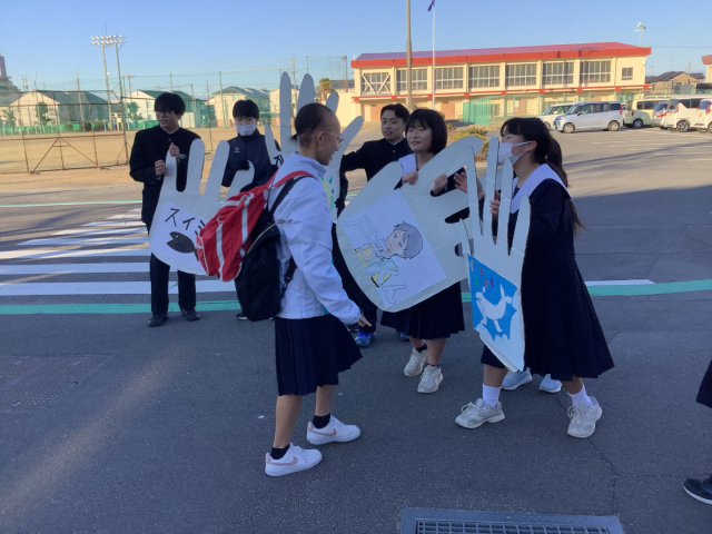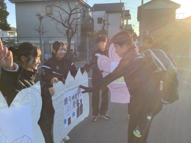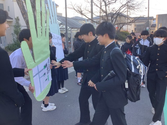 2月3日(火)4日(水)にあいさつ運動を工夫した、「ハイタッチDEあいさつ」を行いました。気分が落ち込みがちな朝に少しでも笑顔であいさつできるようにという思いでこの企画を考えました。