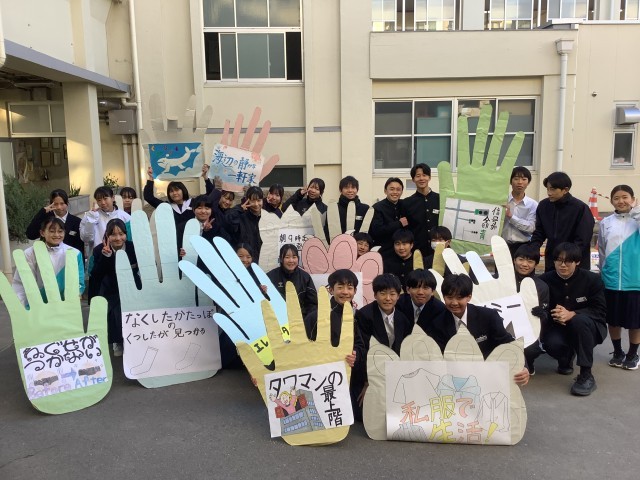 作成した手にタッチする時には、どの選択肢にしようか友達と相談したり、一緒に悩んだり、選びきれずどれにもタッチできなかったりする人もいて、クラスや学年の垣根をこえて、学校全体で盛り上がることができたと思います。この活動が、みなさんの元気な学校生活に繋げられたら幸いです。参加してくれた役員の皆さん、ご協力ありがとうございました。