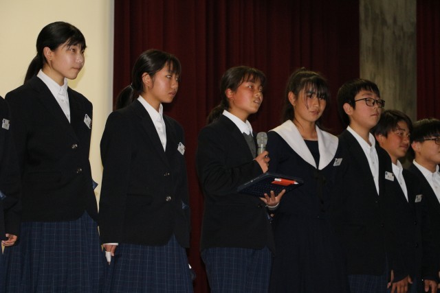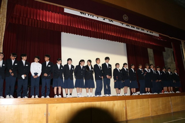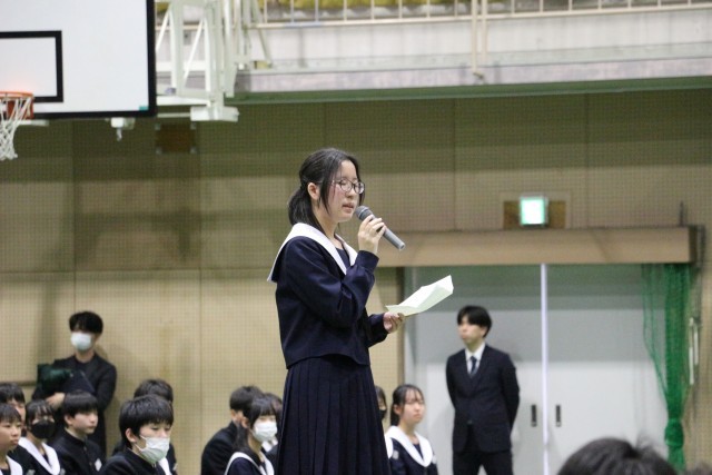 表彰伝達では卓球大会や読書感想画コンクールなどの表彰が読まれました。表彰を取った新中生の仲間に称賛の気持ちで大きな拍手がなり響いており、仲間を讃えている気持ちがとても伝わってきました。