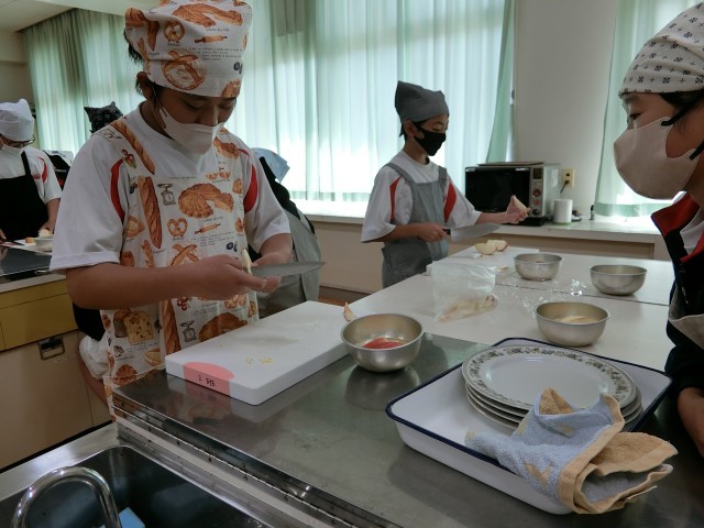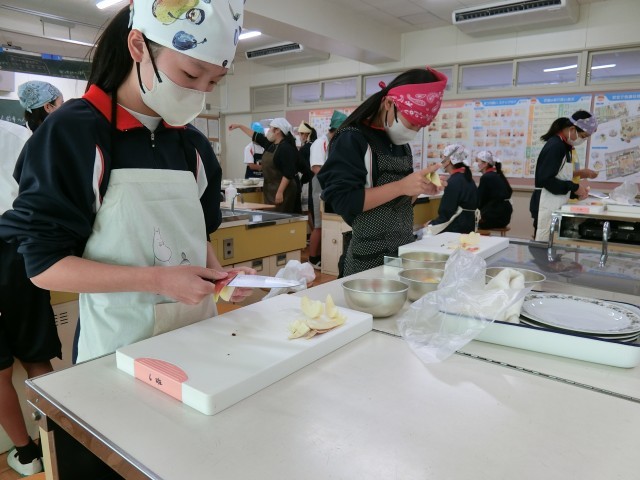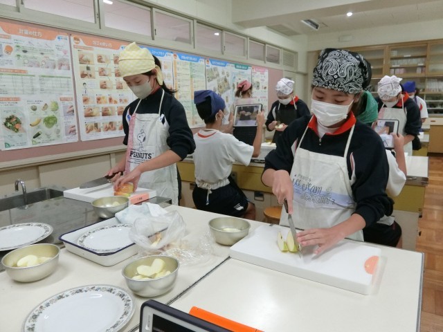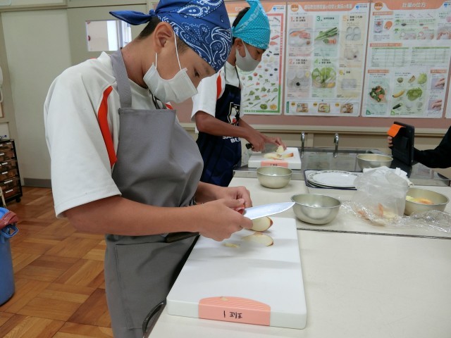 1年C組 リンゴの皮むきテスト 9月22日 公開日 2025/09/25 更新日 2025/09/22 生活 本日、1年C組の家庭科の授業にて、りんごの皮むきテストを行いました。今日の授業までにたくさん練習してきた生徒も多く、りんごの実を削らず皮をむけていました。皮をむくことに苦戦していた生徒も周りのアドバイスを取り入れながら最後まで諦めず取り組むことができました。ぜひ、これからの生活にも役立ててくださいね。 +2 いいね(0)