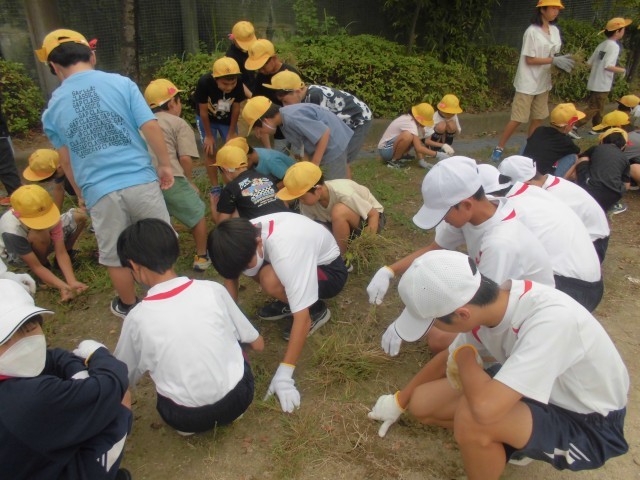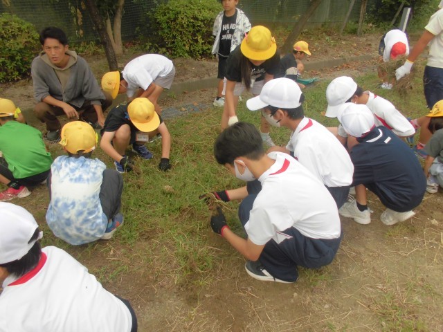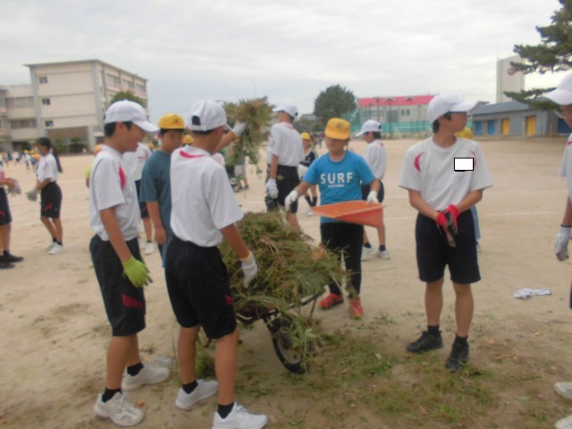 本日、小中連携プロジェクト「春日わくわくプロジェクト」(略して「春わく」)の1回目として、1年生が春日小学校を訪問し、3・4年生の児童と一緒に除草作業を行いました。朝のわずか20分という短い時間でしたが、声を掛け合いながら草取りに励む姿が見られました。小学生にとっては頼もしいお兄さん・お姉さんの存在となり、小学校の先生方にとっても、中学生の少し成長した姿を見ていただけたのではないかと思います。