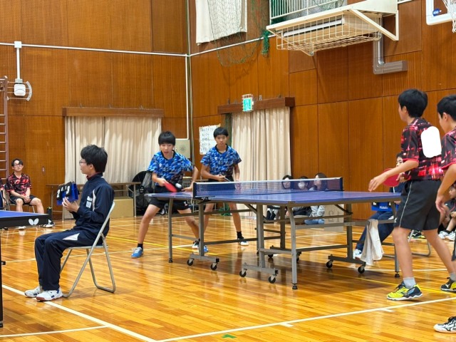 卓球部の地区の新人戦が訓原中学校で行われました。10月25日(土)に団体戦が行われ、チームは予選リーグ敗退となりました。10月26日(日)に個人戦では、前日の反省点を生かし、試合の入り方から仲間と共に気合いをいれて臨み、4回戦まで勝ち進んだ生徒もいました。課題が多く見えて収穫となった新人戦となりました。これからの練習で何を目指していくかを明確にして成長していきたいです。