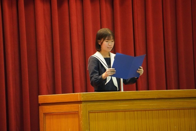 文化祭では「少年の主張」作文の発表がありました。大勢の生徒や保護者を前にし、一人で発表する緊張が走る中、代表生徒が堂々とスピーチをしてくれました。誰しもが抱える悩みや戸惑いを彼女が代弁してくれているかのようで、誰かの背中を押してくれる「少年の主張」だったと思います。