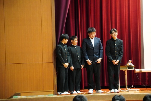 また、今年度は初めての試みとなる「有志発表」が行われました。ダンスや楽器演奏、歌の披露だけでなく、トーチトワリングや動画上映など、有志の生徒たちが自分の特技を堂々と披露し、会場は大いに盛り上がりました。多くの笑顔と拍手に包まれた素敵な時間になりました。夏休みから準備をし、練習に励んでくれた有志の皆さん、ありがとうございました!来年度の有志発表も今から楽しみです!