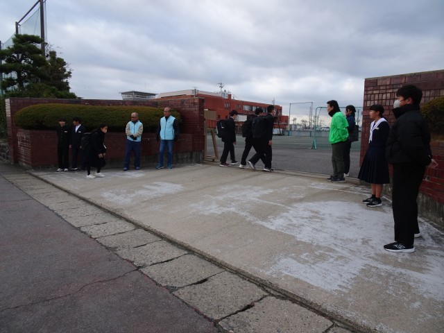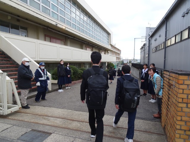 本日の登校時に市家庭教育推進協議会による挨拶運動が行われました。まもなく冬休みを迎える生徒たちに温かな声掛け・挨拶をしていただきありがとうございました。