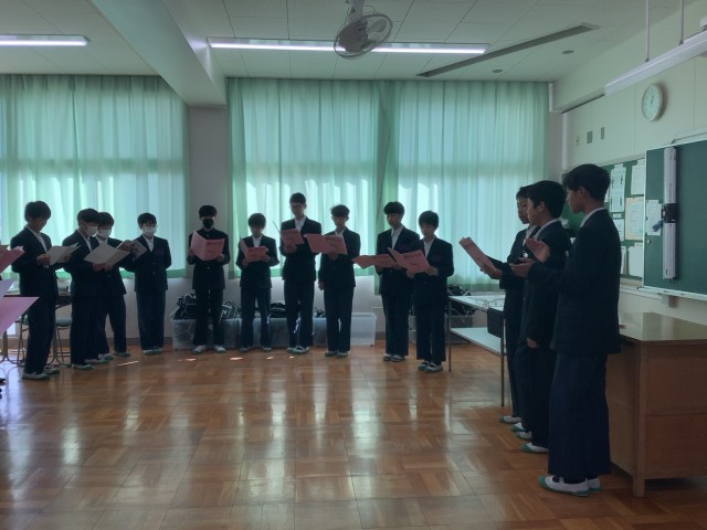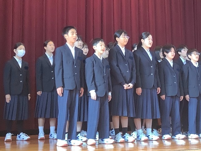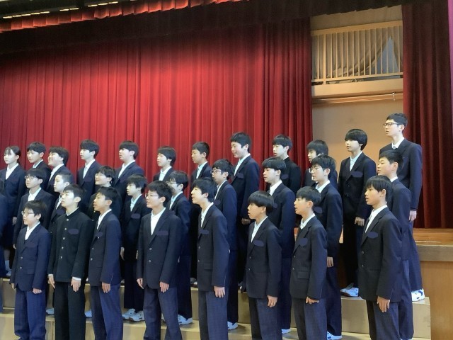 来週の学校見学会にて合唱を披露するため、日々昼放課に練習を行なっています。本日は体育館でリハーサルを行いました。本番では、来年度入学する後輩に一回り成長した中学生らしい姿を見せたいですね。