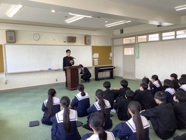 本日、国語の時間に弁論大会を行いました。各クラスから代表者を8名選び、学年全員の前で発表しました。