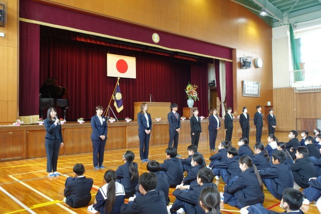 この春の異動で、本校に新たに11名の教職員を迎え、赴任式を行いました。新しく赴任された先生方は、温かい拍手に包まれながら紹介されました。新しい教職員を迎え、本校は新たな体制でスタートします。これからも、児童生徒一人一人の成長を大切にしながら、教育活動の充実に努めてまいります。
