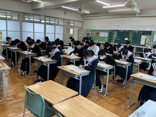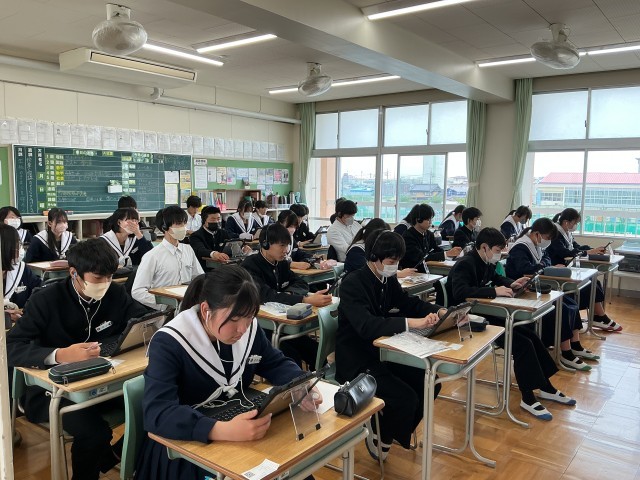 22日には、タブレットを使って、英語のリスニング問題や読解問題を解きました。23日には、国語と数学の問題を解きました。どちらの学級も真剣な雰囲気で取り組むことができました。