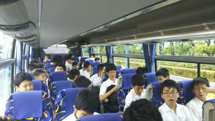 本日の午前中は、浅草伝統工芸体験です。各クラス、男女に分かれて体験活動をします。バスに乗って向かっています。