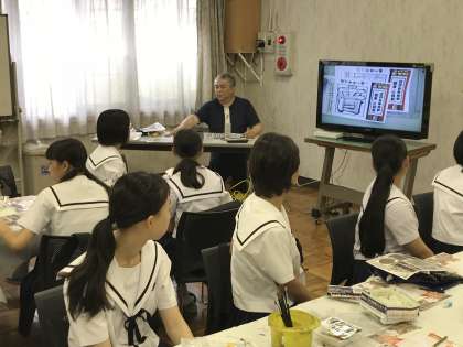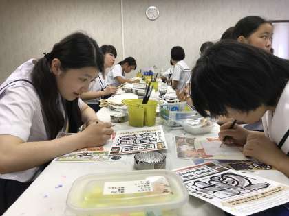 自分で選んだ文字を江戸文字にし、センスに書いていきます。
