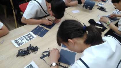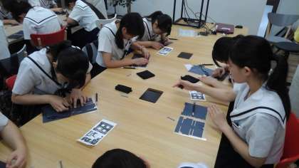 Tシャツにプリントするための型を切っています。