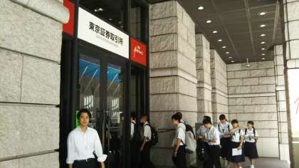 昼食後は、東京証券取引所と警視庁と日本銀行に分かれて、研修をします。東京証券取引所での研修を紹介します。