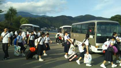 入村式後、ペンションへ向かいます。しっかり生活してほしいと思います。